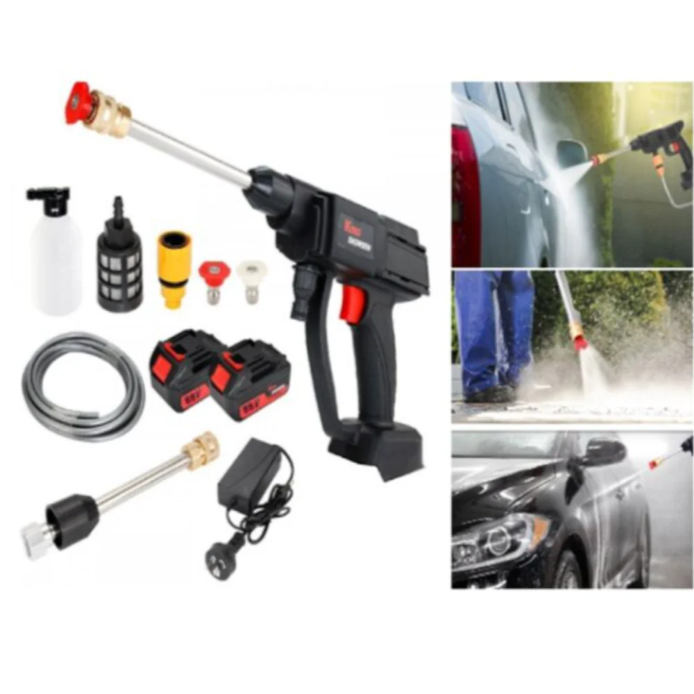 Akkumulátoros autómosó pisztoly, Hordozható nagynyomású autómosó – 120 liter/óra sebességgel, 5 méter hosszú csővel és 24Bar üzemi nyomással